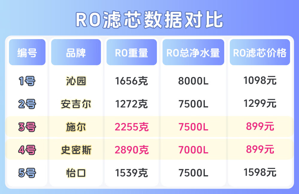 3号施尔>4号史密斯>5号怡口>1号沁园>2号安吉尔。